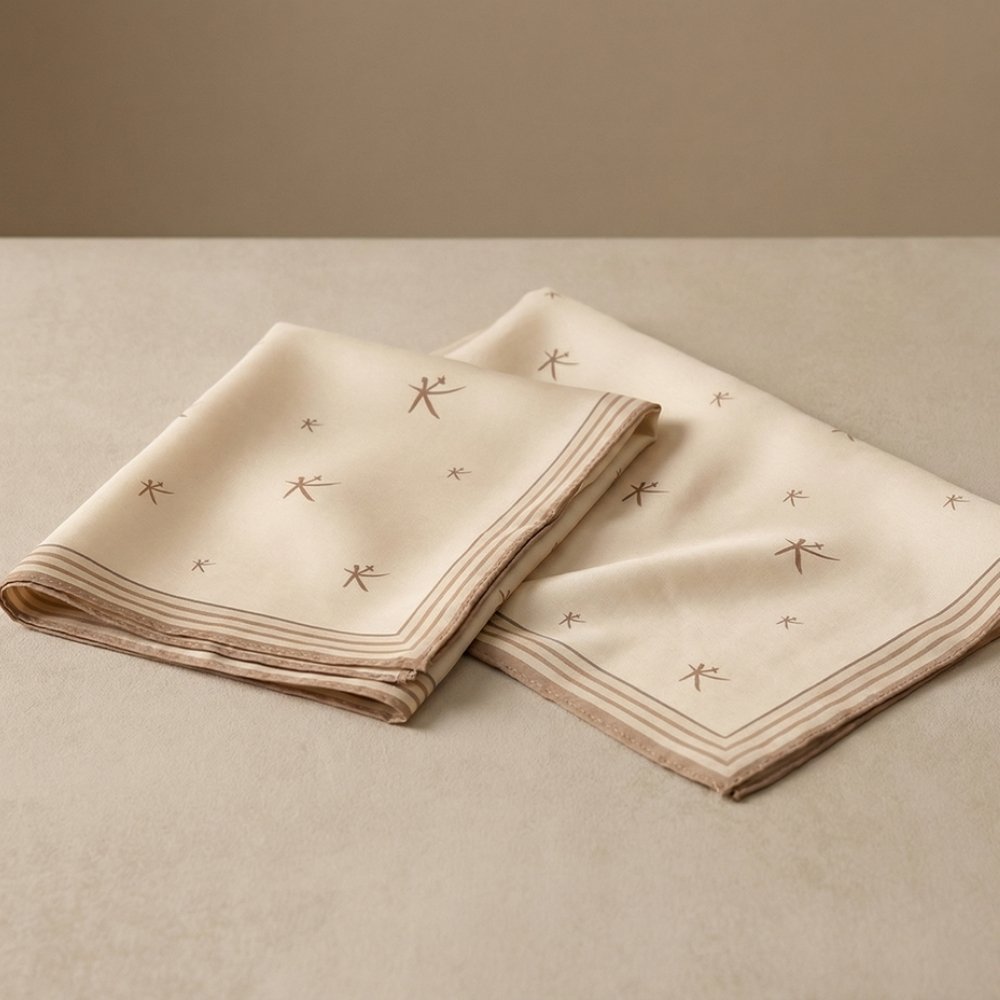 - Kumaş: İpek–pamuk karışımı, ince dokulu ve yumuşak düşüşlü